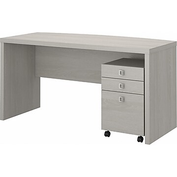 Office By Kathy Ireland Echo 60 Bow Front Computer Desk With Mobile Cabinet Gray Sand Ech001gs Staples